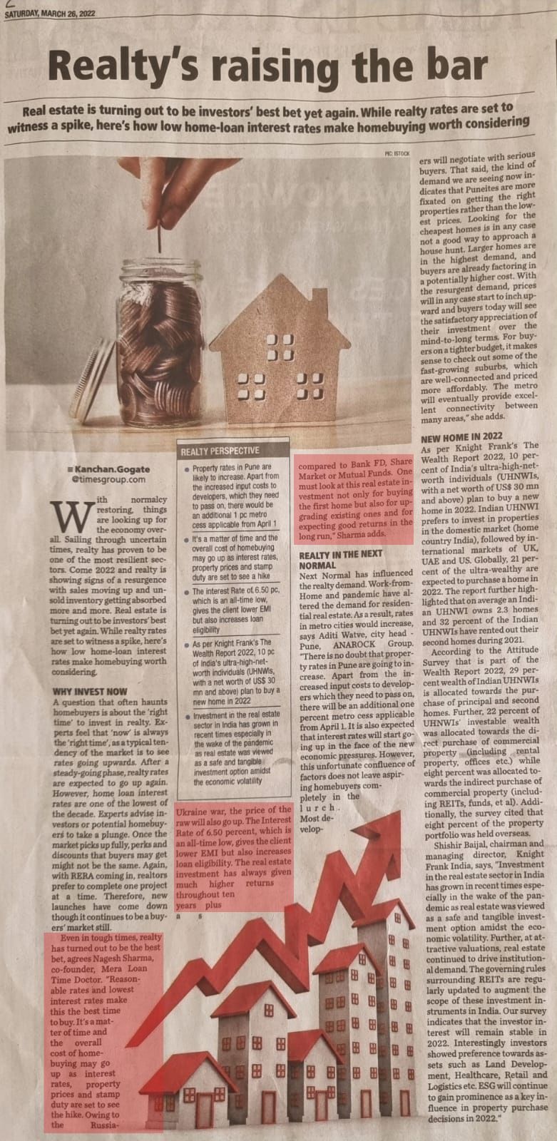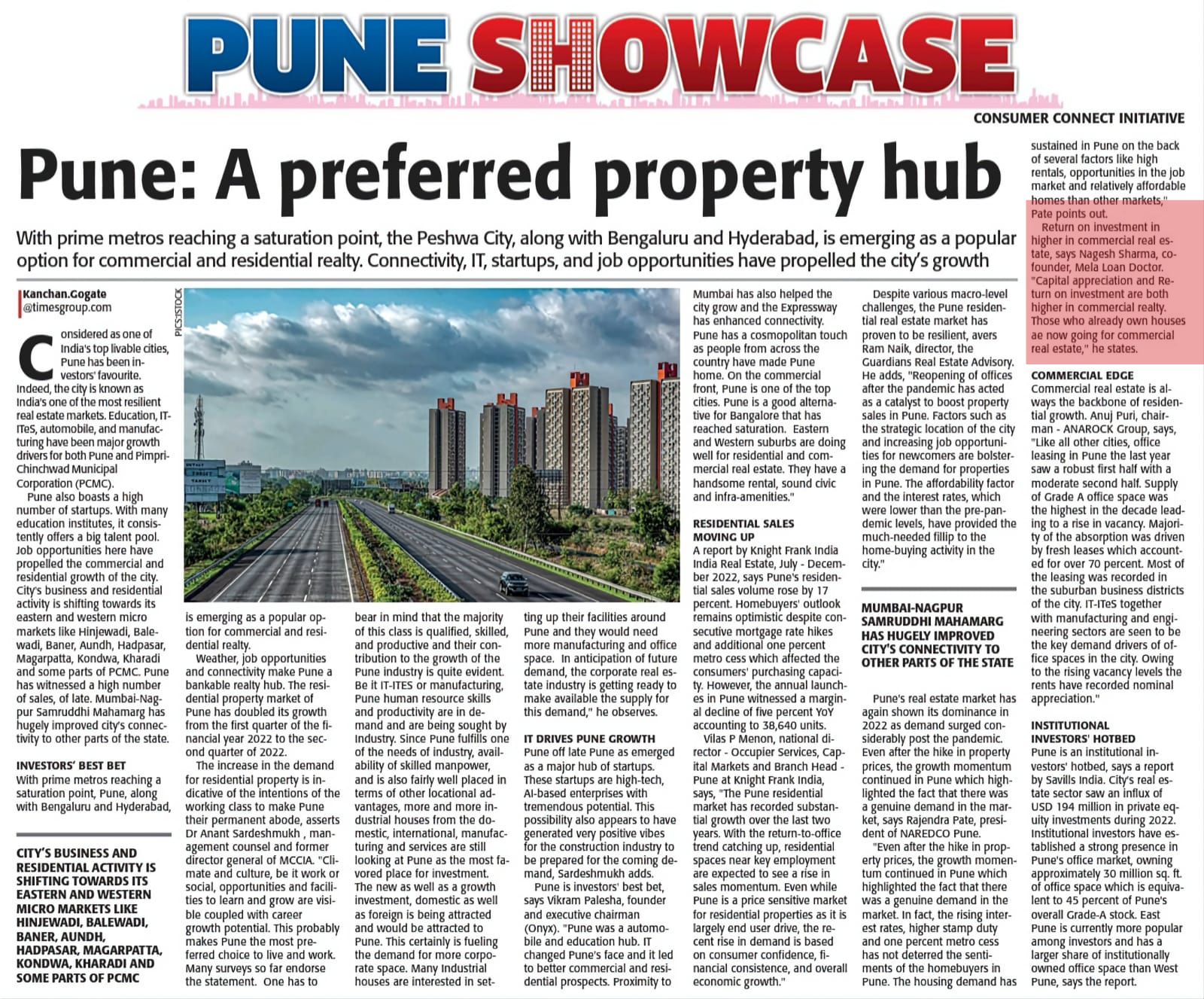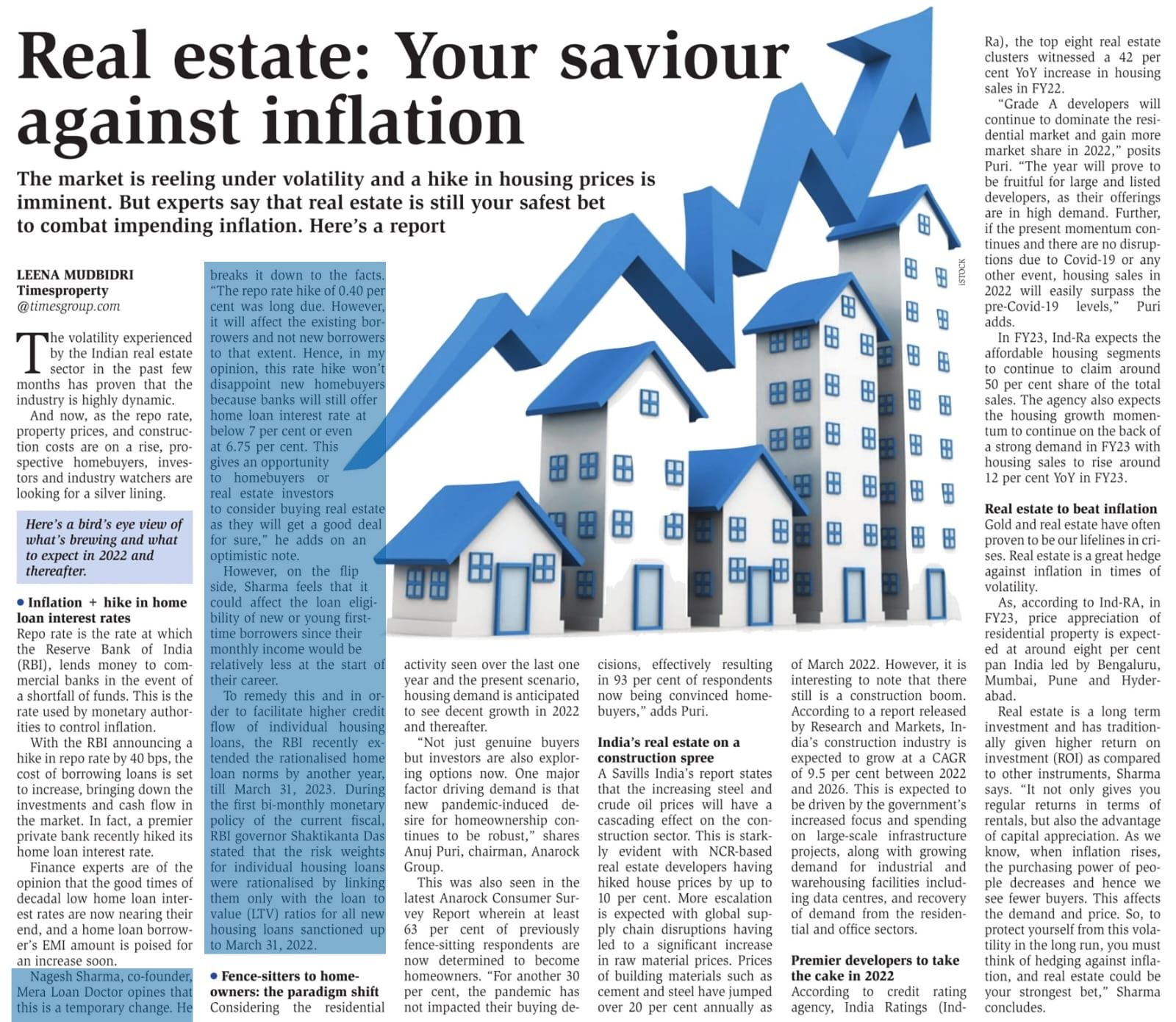 Times Property magazine article by mr Nagesh Sharma