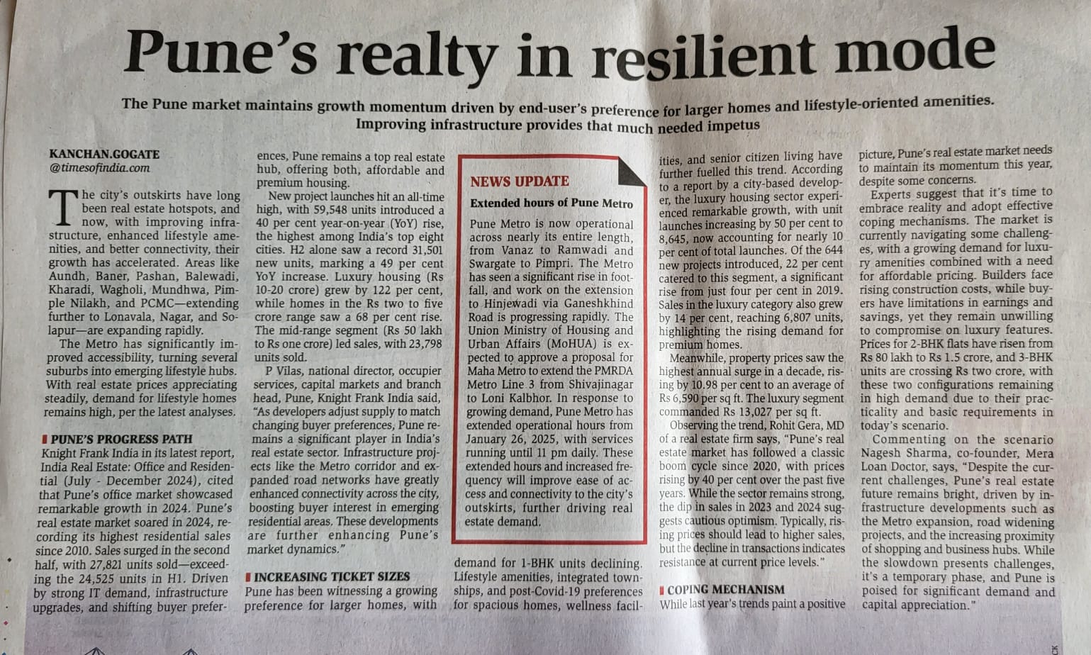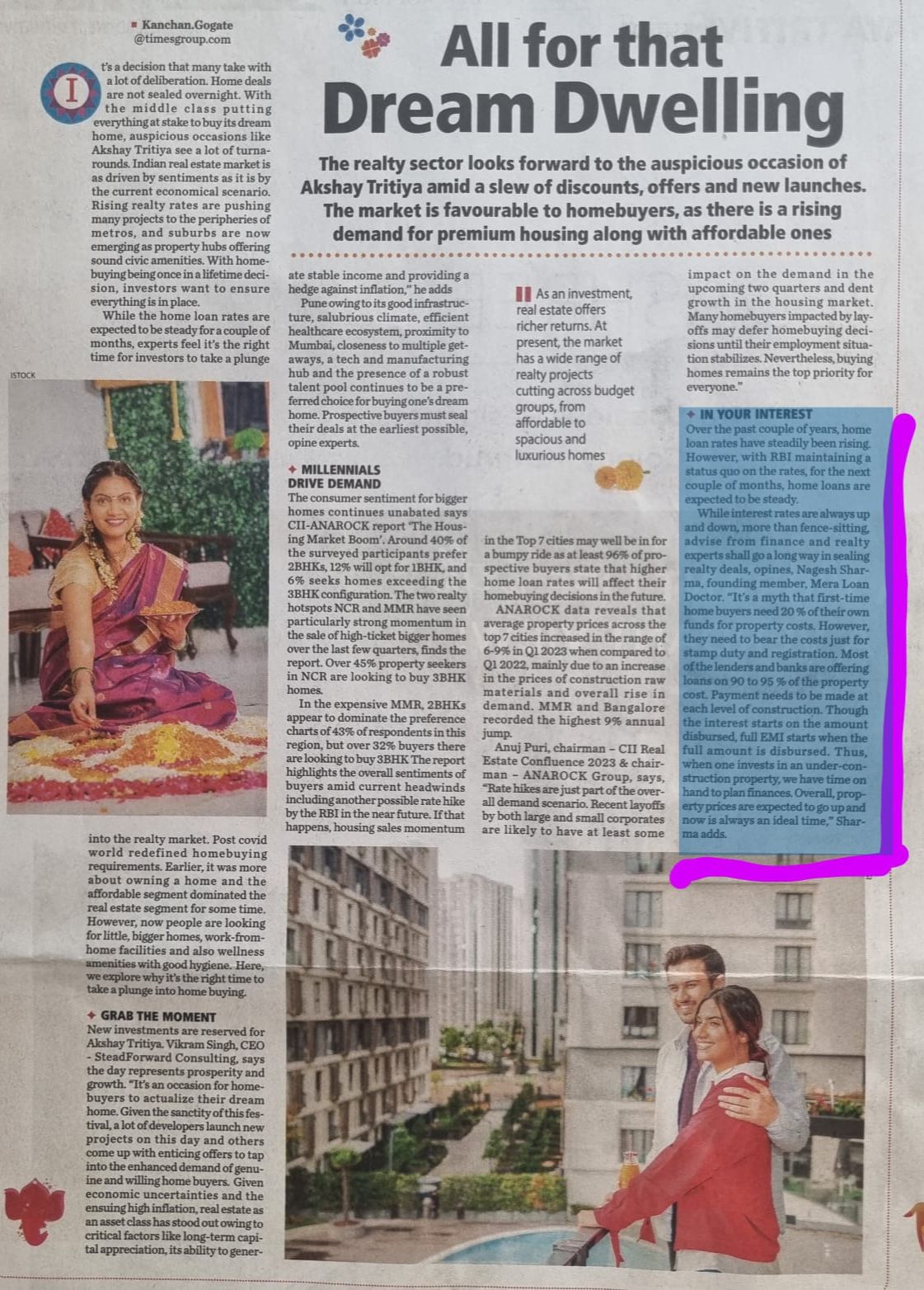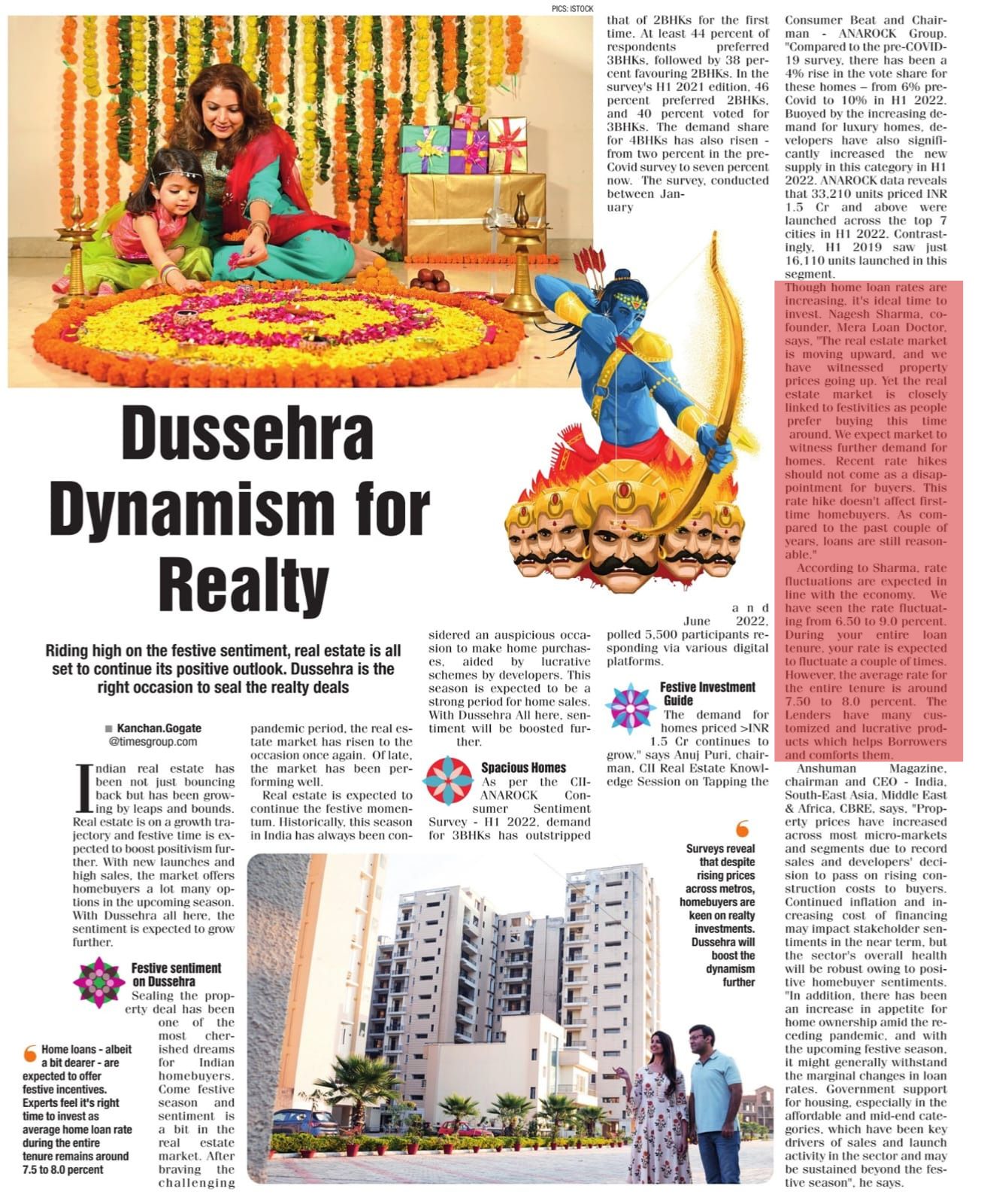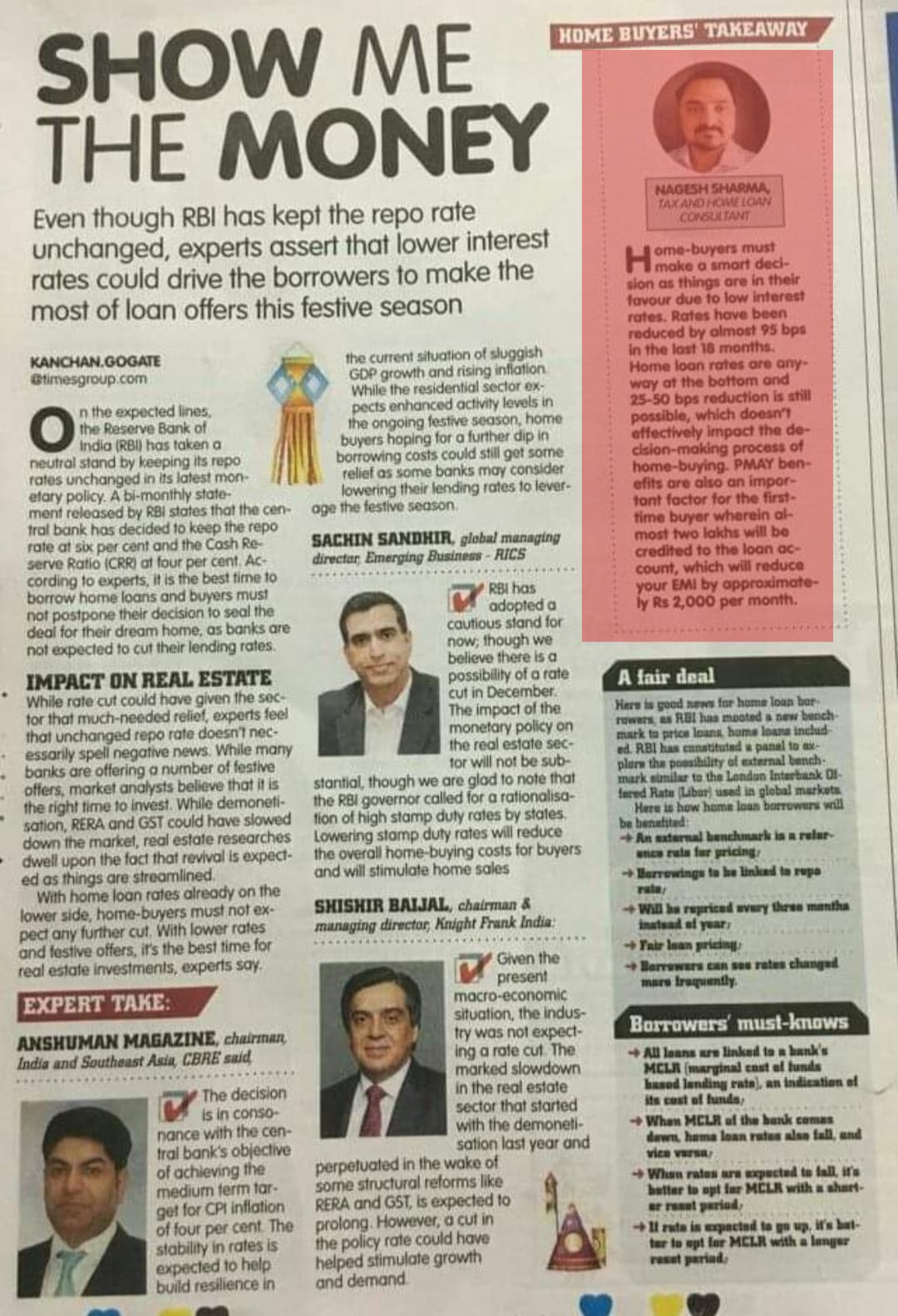 Times Property magazine article by mr Nagesh Sharma
