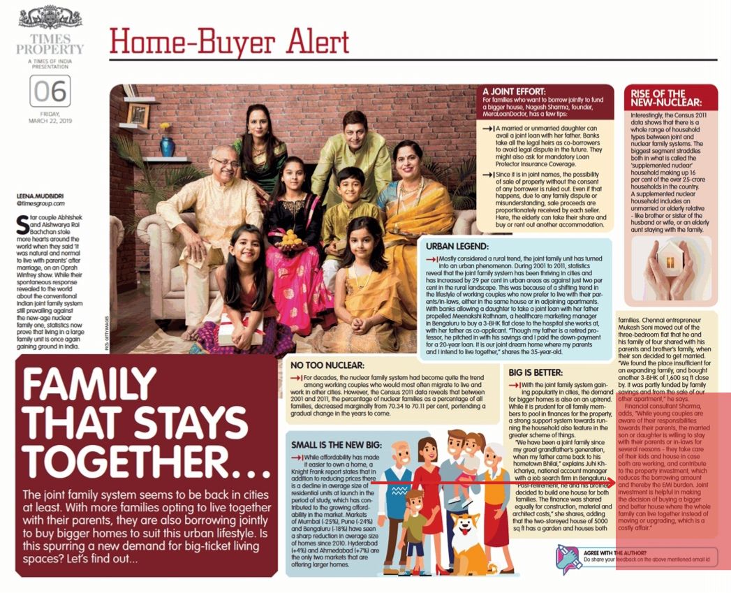 OPinion on Nuclear family and Real estate - By Mr. Nagesh Sharma in Times Property.